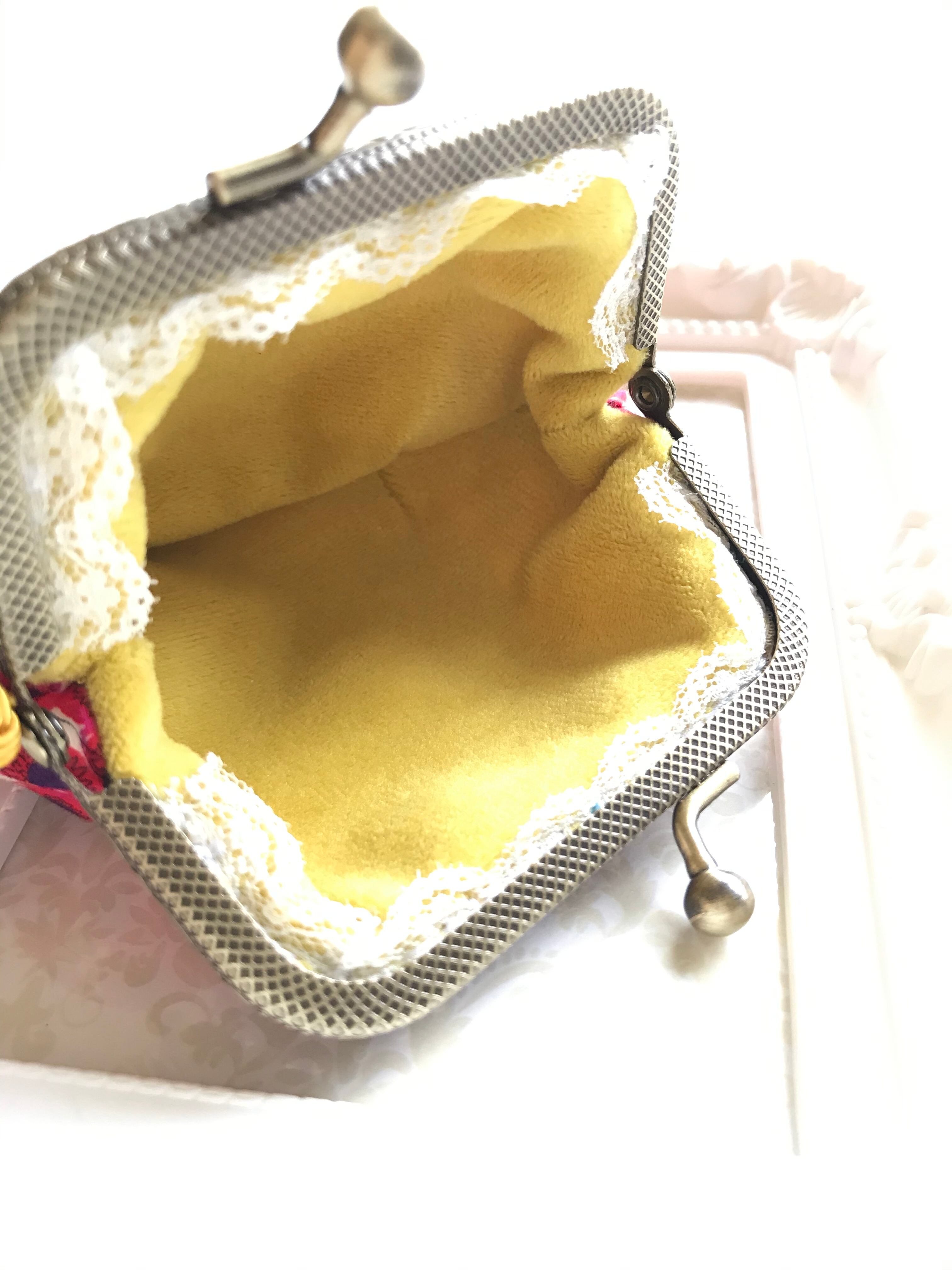 中布はフランスから取り寄せた黄色いベルベット。とっても肌触りが良く発色が綺麗です。
