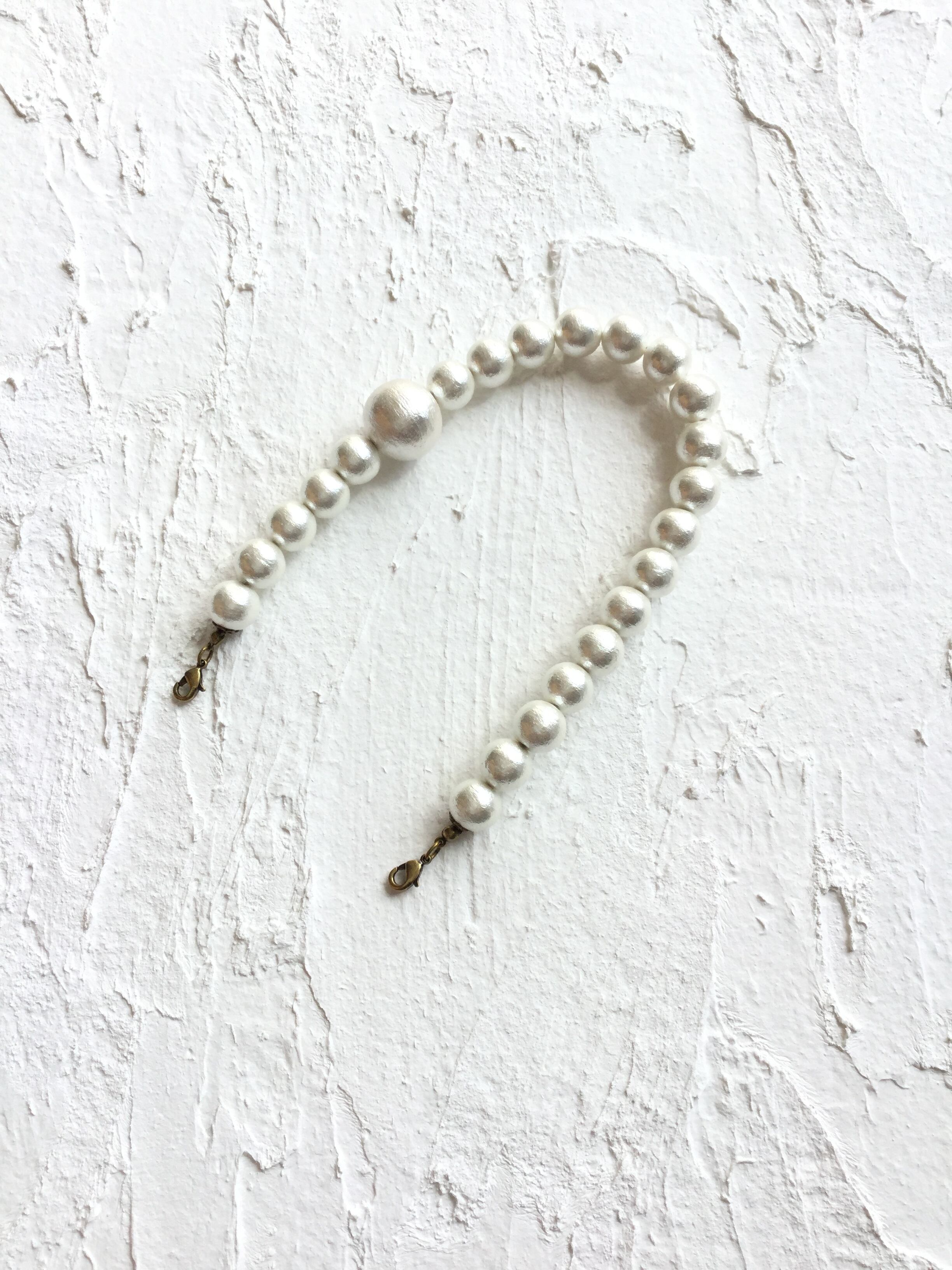 12mmのコットンパールに16mmを一粒入れた持ち手です。
